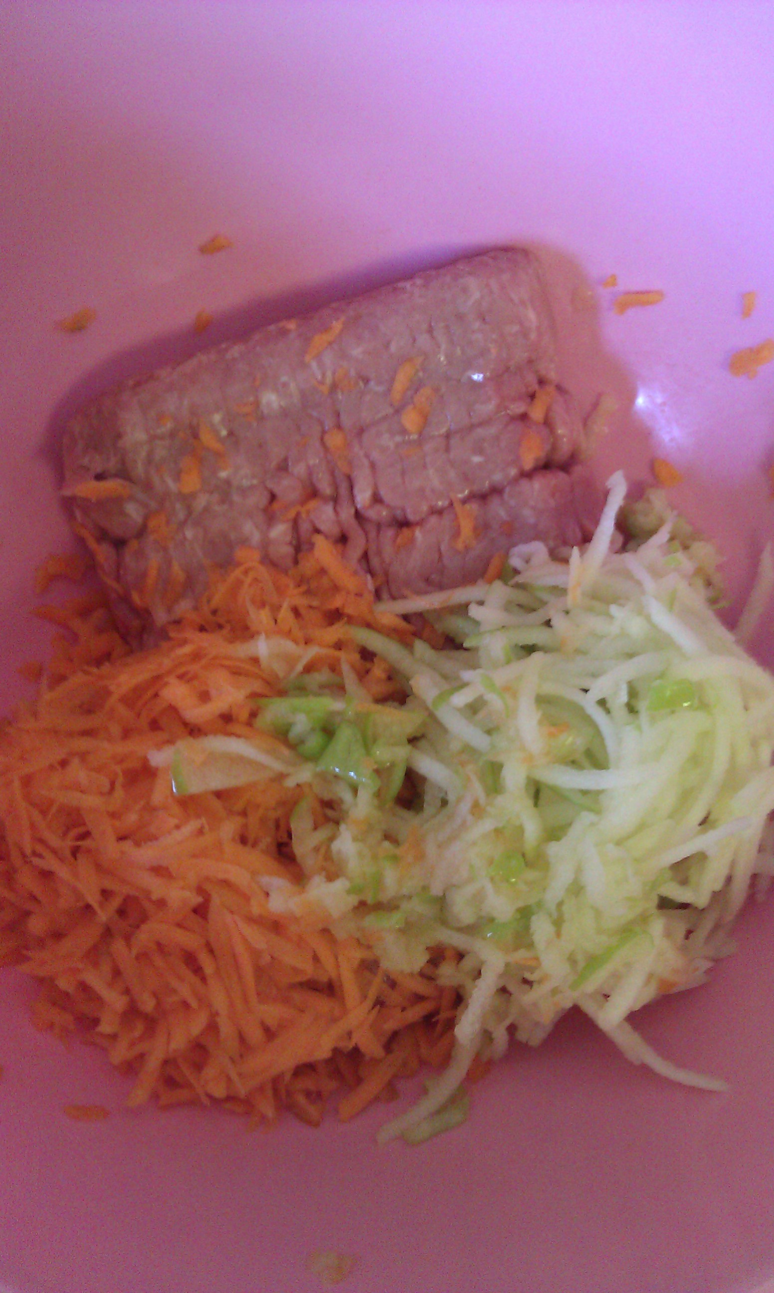 1. Shred the apple and carrots and mix with ginger, soy sauce, egg, bread crumbs and turkey.